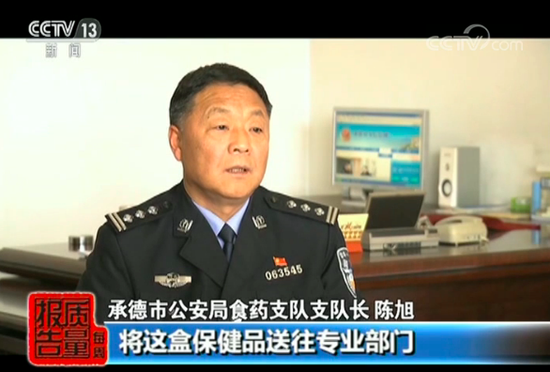 河北省承德市公安局食药支队支队长 陈旭:我们立即受案,将这盒保健品送往专业部门进行检验检测,结果通过检验仁合胰宝这个保健食品,含有西药。