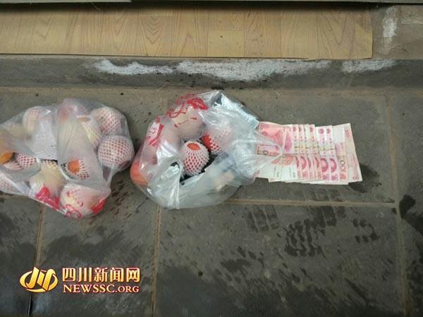 神秘男子强塞两袋苹果和千元现金后消失