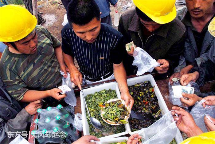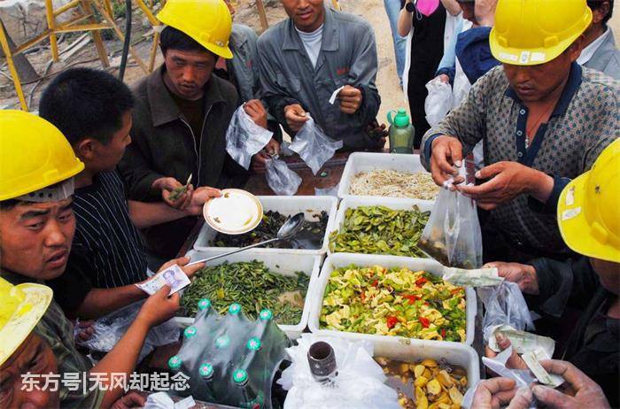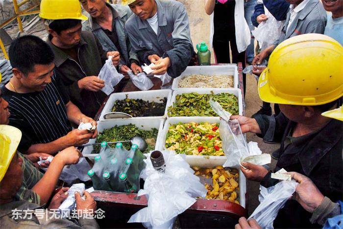 现在的工地基本上卖饭菜的摊位是承包的,午餐五元一份,全是素,在价格上已经是很便宜了,包吃饱。