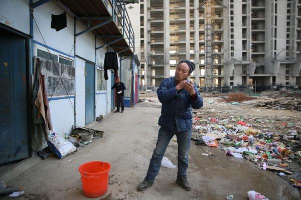 工棚里,挂着三件一年经常换洗的衣物,几双穿破带着泥巴的工鞋摆在地上。石纪斌搓搓手告诉澎湃新闻,挣钱不容易,夏天很热,冬天很冷,家里还有老人,去年回家过年时,因为没拿到工钱,他和父亲在家里吃了一整冬的土豆,他希望今年不要再空手回家。