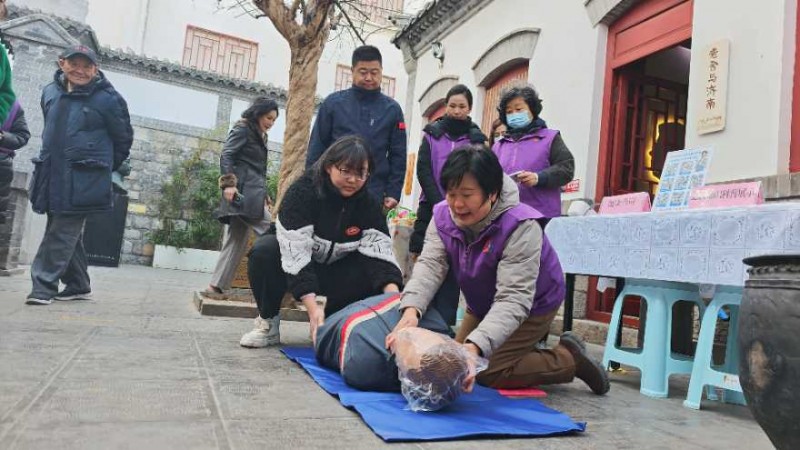 家庭急救知识普及区前人头攒动,志愿者利用模型详细演示心肺复苏和海姆立克急救法的操作要领,现场指导居民实操练习。“这些救命技能太实用了,今天终于掌握了正确步骤!”参与体验的王奶奶表示收获满满。据悉,此次健康服务板块是山东省巾帼志愿者协会“体卫融合我先行,志愿服务助健康”公益理念的生动实践,精准对接了居民健康需求。