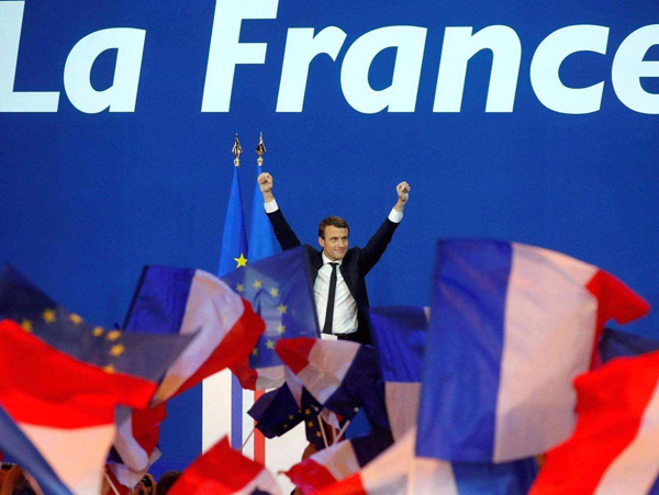 2017年5月7日的法国大选中,马克龙战胜极右翼候选人玛丽娜·勒庞,当选“史上最年轻”的法国总统。