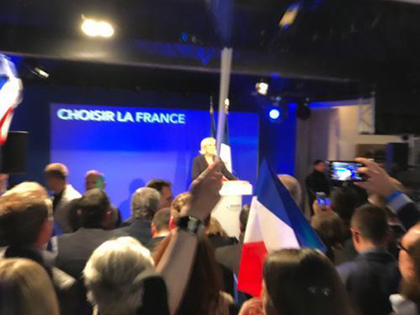 勒庞在承认竞选失败后"祝愿马克龙成功"。她对支持者们说,法国社会现在被分为两大派别,分别是"全球化主义者和爱国者"。